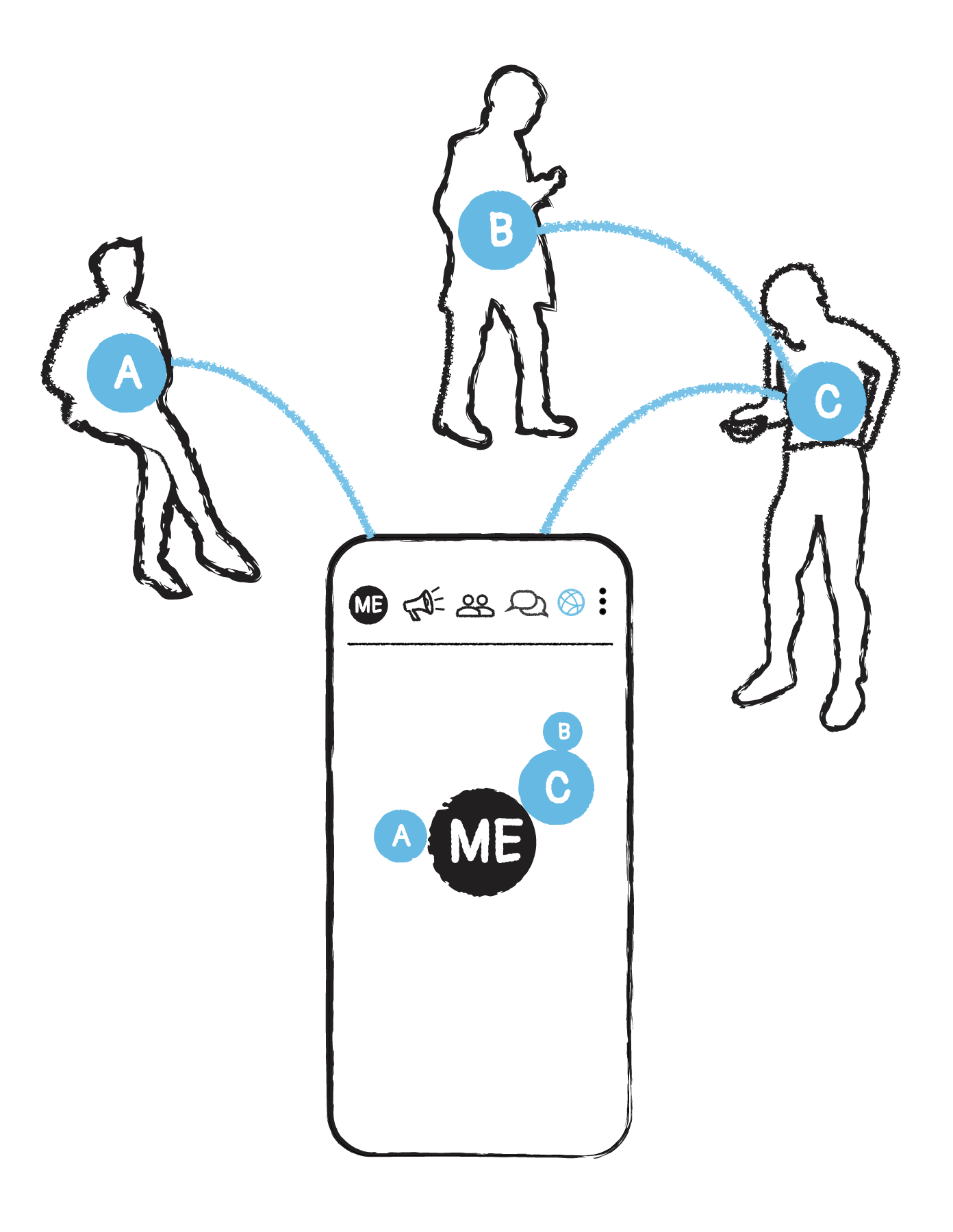 qaul allows you to see the Internet Independent Wireless Mesh Network. You see how you are connected with other users. |